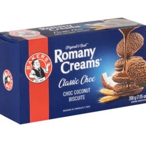 $4.89Savor the timeless taste of Romany Creams Classic Chocolate. This 200g pack features crisp, chocolatey coconut biscuits sandwiched together with a rich, creamy chocolate filling, perfect for sharing or enjoying on your own.